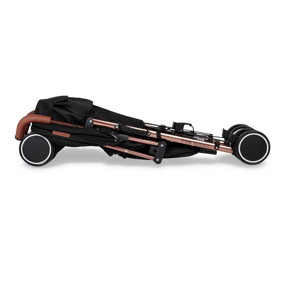 Folded Ickle Bubba Discovery MAX stroller in rose gold and black with compact design and sleek wheels