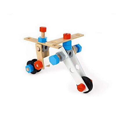 - Made from chinese cherry wood (bolts, screws, cubes, spanner and screwdriver), MDF (grey rings), Plywood (planks)