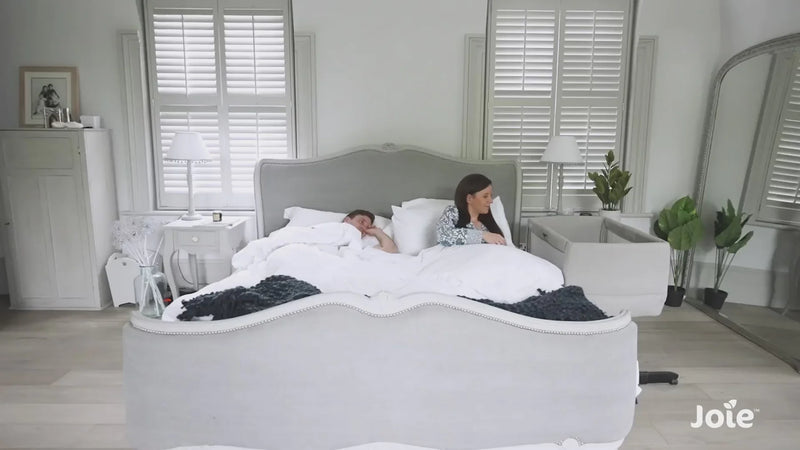 The Joie Roomie Go Travel Bedside Crib makes sleeping side by side with baby a dream. Your little one snugly in arm’s reach, you can easily feed, cuddle, soothe or simply stare at that sweet face from the comfort of any bed.