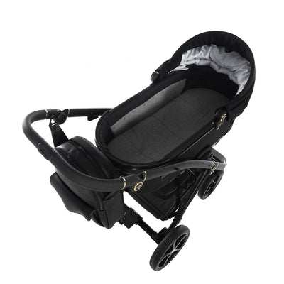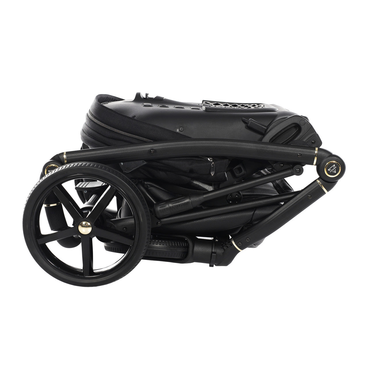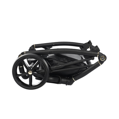 The height adjustable handle bar can be adjusted 180° to suit all members of the family and has an eco-leather finish for utmost comfort. The ingenious folding mechanism allows for a compact collapse, the chassis can fold together with the pushchair seat unit attached, protecting the upholstery and ensuring hygiene.