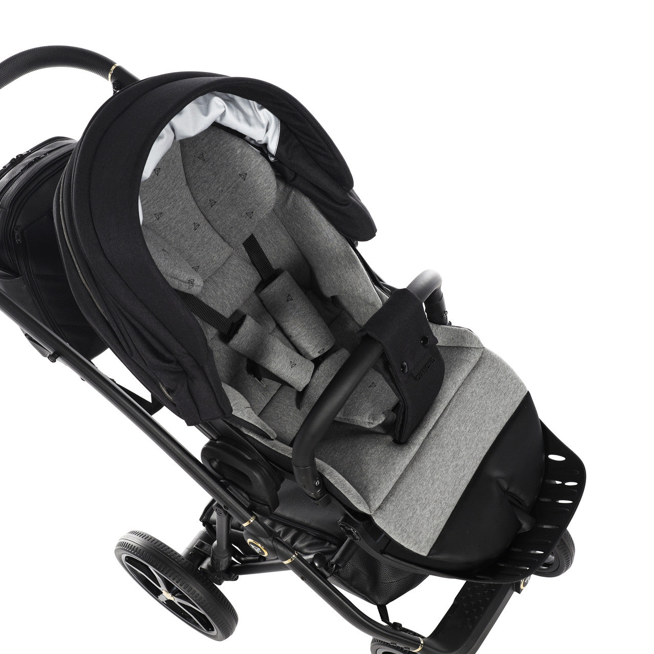 The seat unit is suitable for a child up to 15 kg in weight (approx. 3 years, do not exceed 22 kg). Your little one can either face you or the outside world. The pushchair seat unit is fully made from ultralight polypropylene, which is also one of the most eco-friendly plastic available on the market. Comfort, functionality and safety are guaranteed with a 5-point harness and an eco-leather front bar that opens and closes with ease.