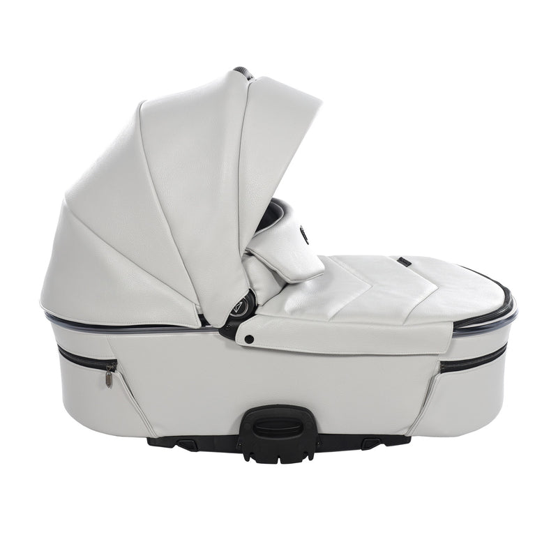 The iconic carrycot is suitable from birth up to 6 months, 9kgs (approx). The carrycot features a large hood, adjustable backrest, comfortable mattress and cotton lining. Thanks to the unique integral unplug system, you can release the carrycot from the chassis with just one hand. Carrying the carrycot is a breeze with its elegant built in eco-leather carry handle.