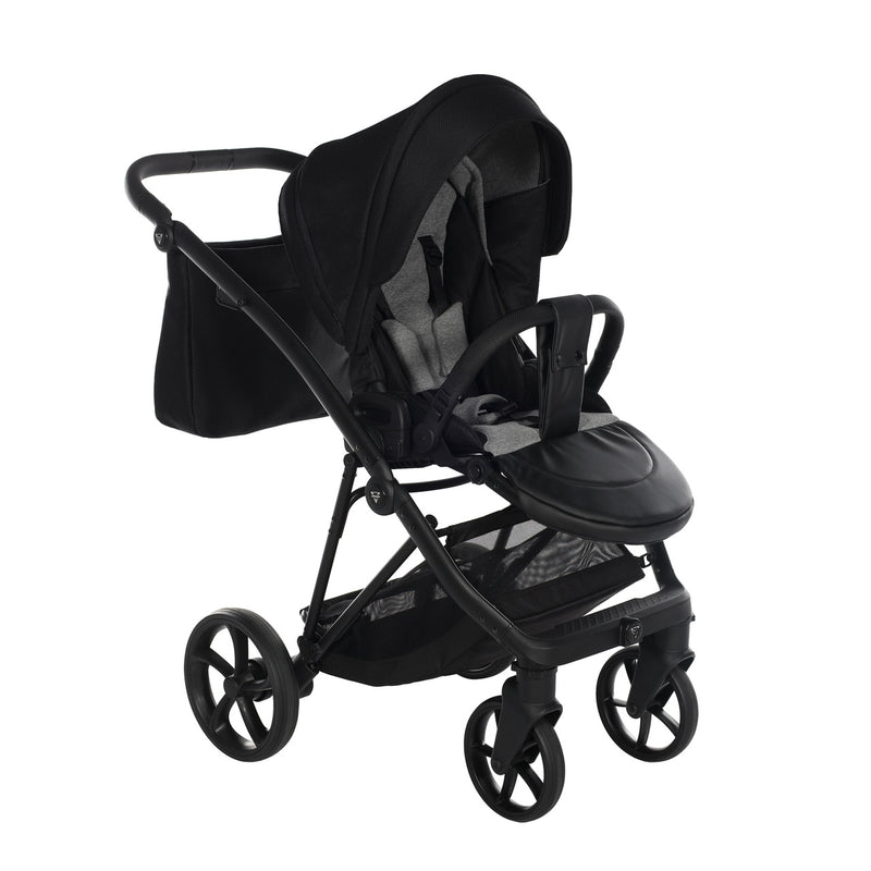 The aluminium chassis comes with superb suspension, large shopping basket and quick release wheels. Engineered with 6 shock breakers which make the pram extra comfortable and smooth. The reliable front suspension release system absorbs shocks from the ground and frontal blows, for example when hitting the curb. The chassis is engineered with a separate adjustable shock absorber, ensuring agile steering on all terrains.