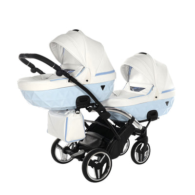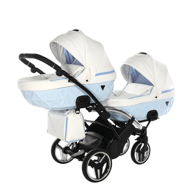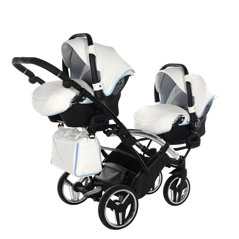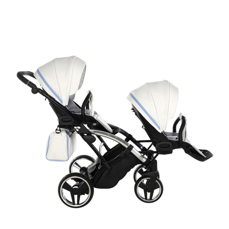 Double the happiness, double the joy and pride but also double the responsibilities and challenges. In order to meet the expectations of parents with twins, we have developed two models of twin strollers. The Duo Slim has been constructed in such a way that children can sit one behind the other, whereas the duo model allows children to sit next to each other.