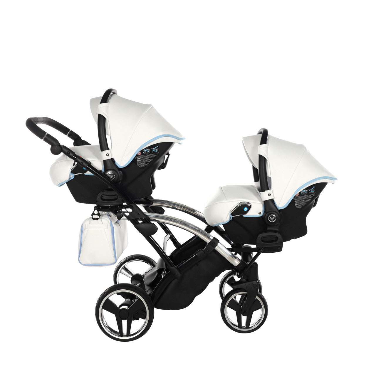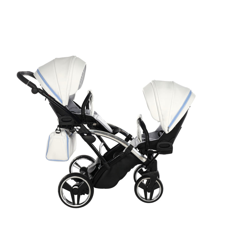 Double the happiness, double the joy and pride but also double the responsibilities and challenges. In order to meet the expectations of parents with twins, we have developed two models of twin strollers. The Duo Slim has been constructed in such a way that children can sit one behind the other, whereas the duo model allows children to sit next to each other.