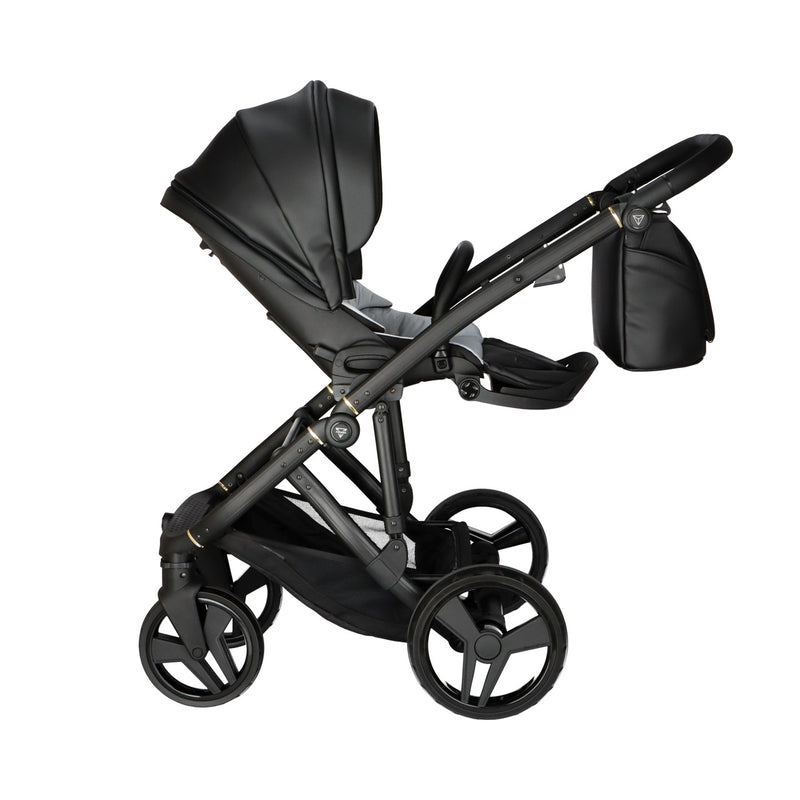The height adjustable handle bar can be adjusted 180° to suit all members of the family and has an eco-leather finish for utmost comfort. The ingenious folding mechanism allows for a compact collapse, the chassis can fold together with the pushchair seat unit attached, protecting the upholstery and ensuring hygiene.