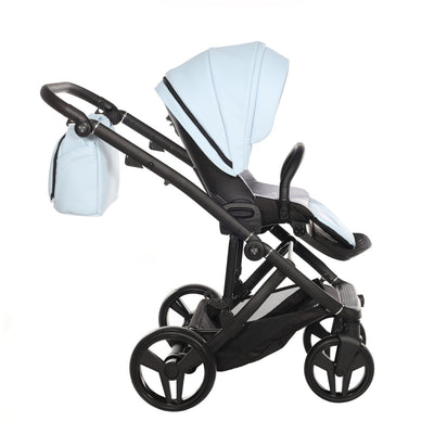 The height adjustable handle bar can be adjusted 180° to suit all members of the family and has an eco-leather finish for utmost comfort. The ingenious folding mechanism allows for a compact collapse, the chassis can fold together with the pushchair seat unit attached, protecting the upholstery and ensuring hygiene.
