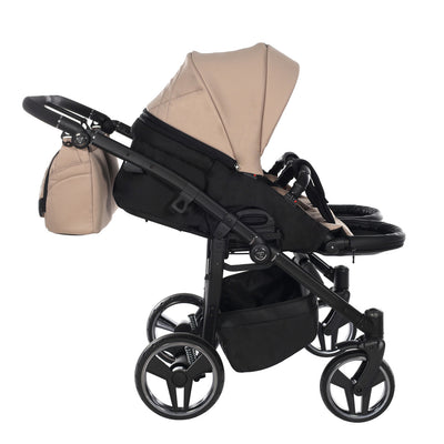 The aluminium chassis comes with superb suspension, large shopping basket and quick release wheels. Engineered with 6 shock breakers which make the pram extra comfortable and smooth. The reliable front suspension release system absorbs shocks from the ground and frontal blows, for example when hitting the curb.