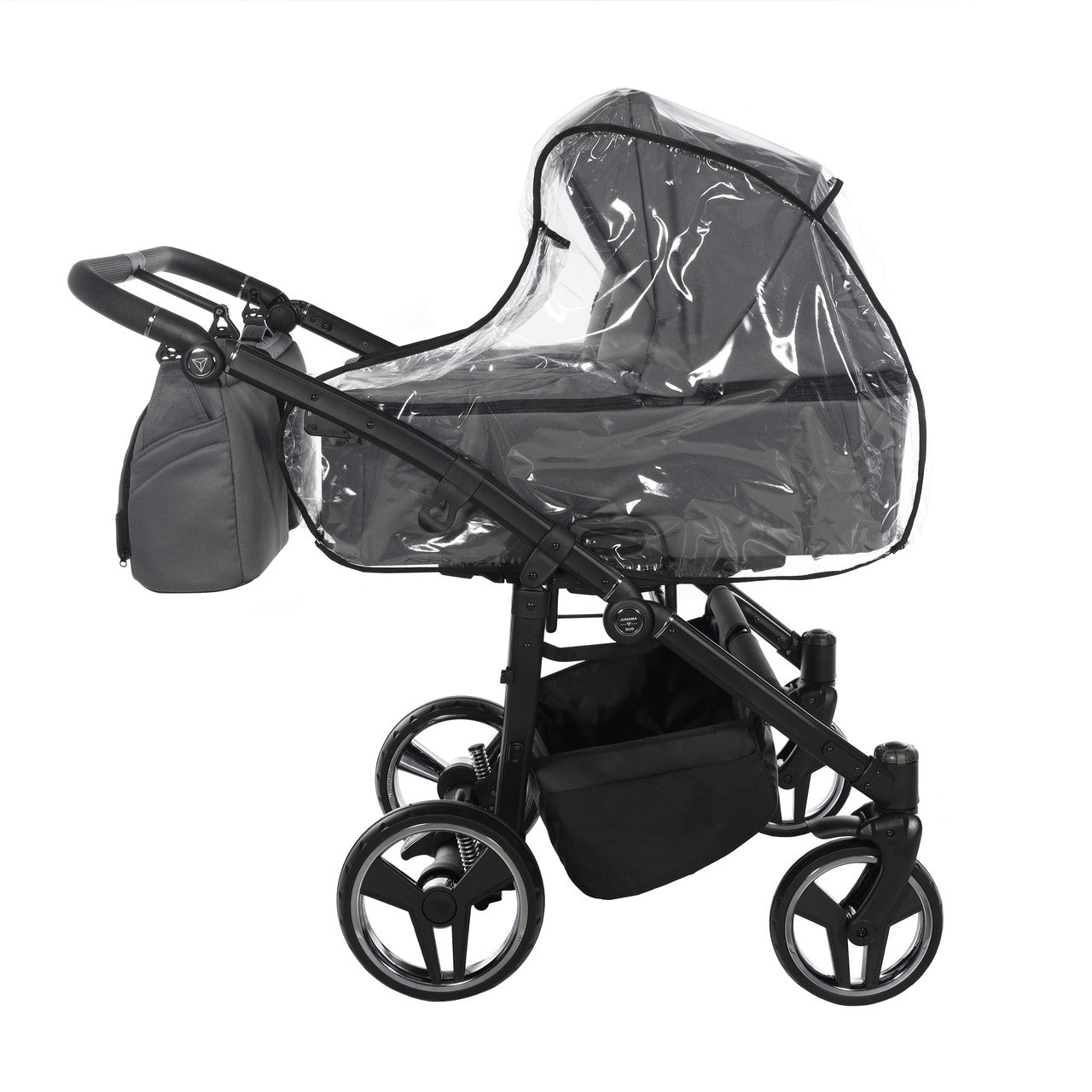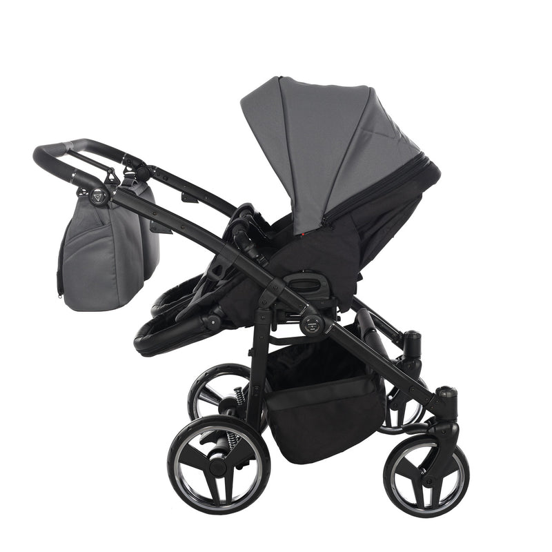 The aluminium chassis comes with superb suspension, large shopping basket and quick release wheels. Engineered with 6 shock breakers which make the pram extra comfortable and smooth. The reliable front suspension release system absorbs shocks from the ground and frontal blows, for example when hitting the curb.