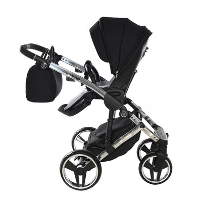 The aluminium chassis comes with superb suspension, large shopping basket and quick release wheels. Engineered with 6 shock breakers which make the pram extra comfortable and smooth. The reliable front suspension release system absorbs shocks from the ground and frontal blows, for example when hitting the curb. The chassis is engineered with a separate adjustable shock absorber, ensuring agile steering on all terrains.