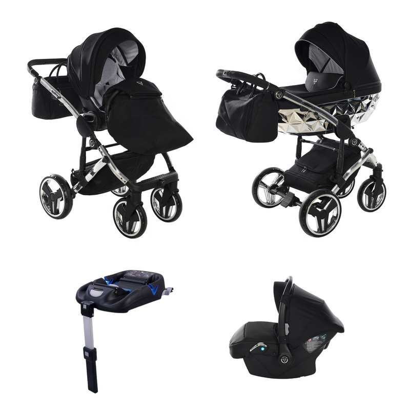 JUNAMA FLUO INDIVIDUAL MIRROR BLACK SILVER - 4IN1 (INCLUDES CAR SEAT & ISOFIX BASE)