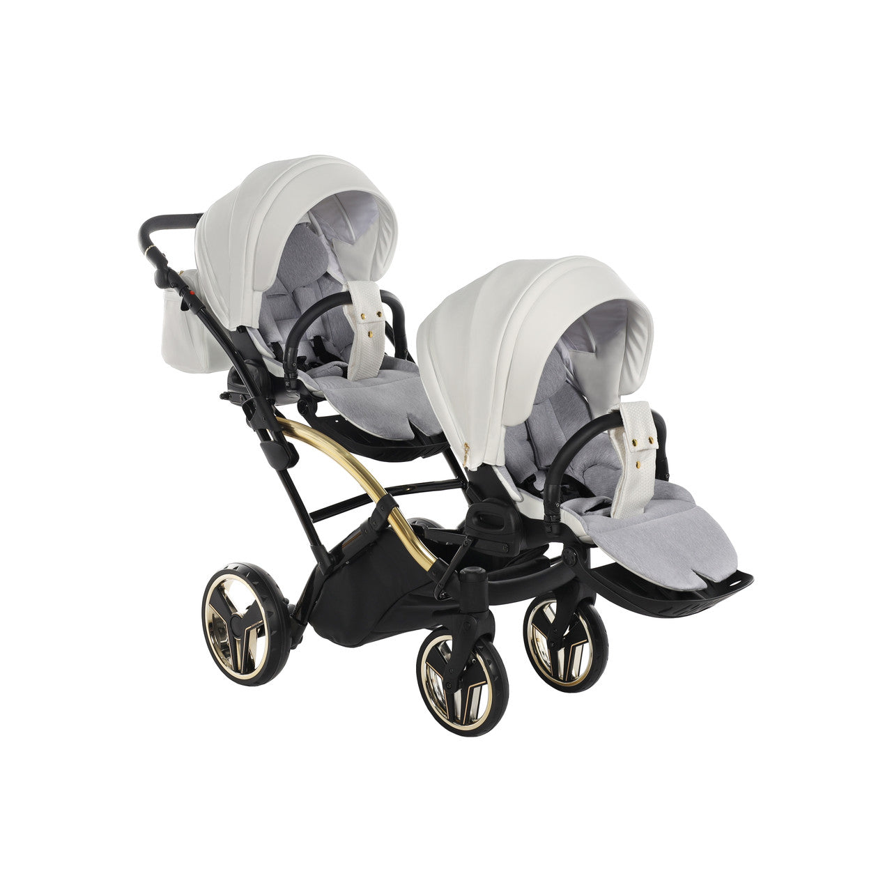 Double the happiness, double the joy and pride but also double the responsibilities and challenges. In order to meet the expectations of parents with twins, we have developed two models of twin strollers. The Duo Slim has been constructed in such a way that children can sit one behind the other, whereas the duo model allows children to sit next to each other.