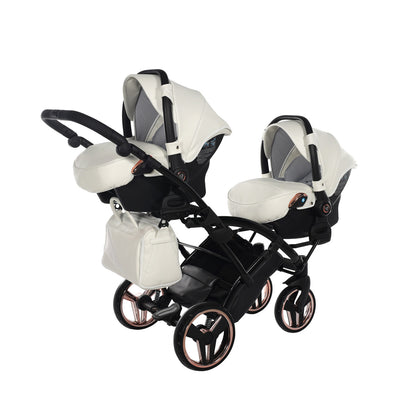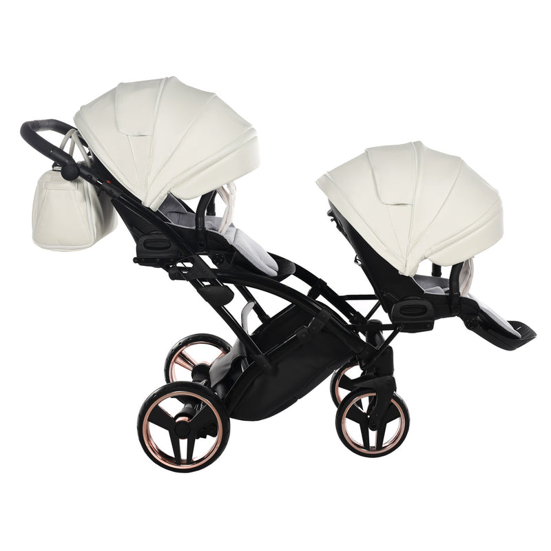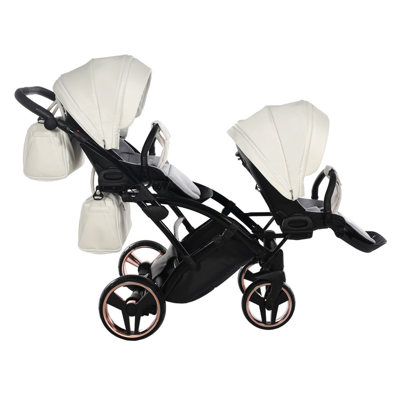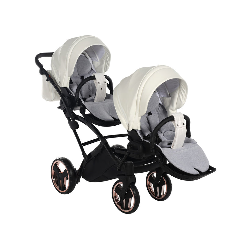 Double the happiness, double the joy and pride but also double the responsibilities and challenges. In order to meet the expectations of parents with twins, we have developed two models of twin strollers. The Duo Slim has been constructed in such a way that children can sit one behind the other, whereas the duo model allows children to sit next to each other.