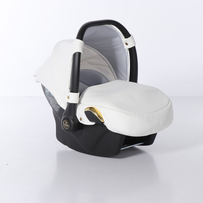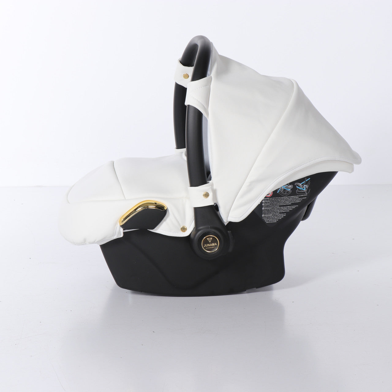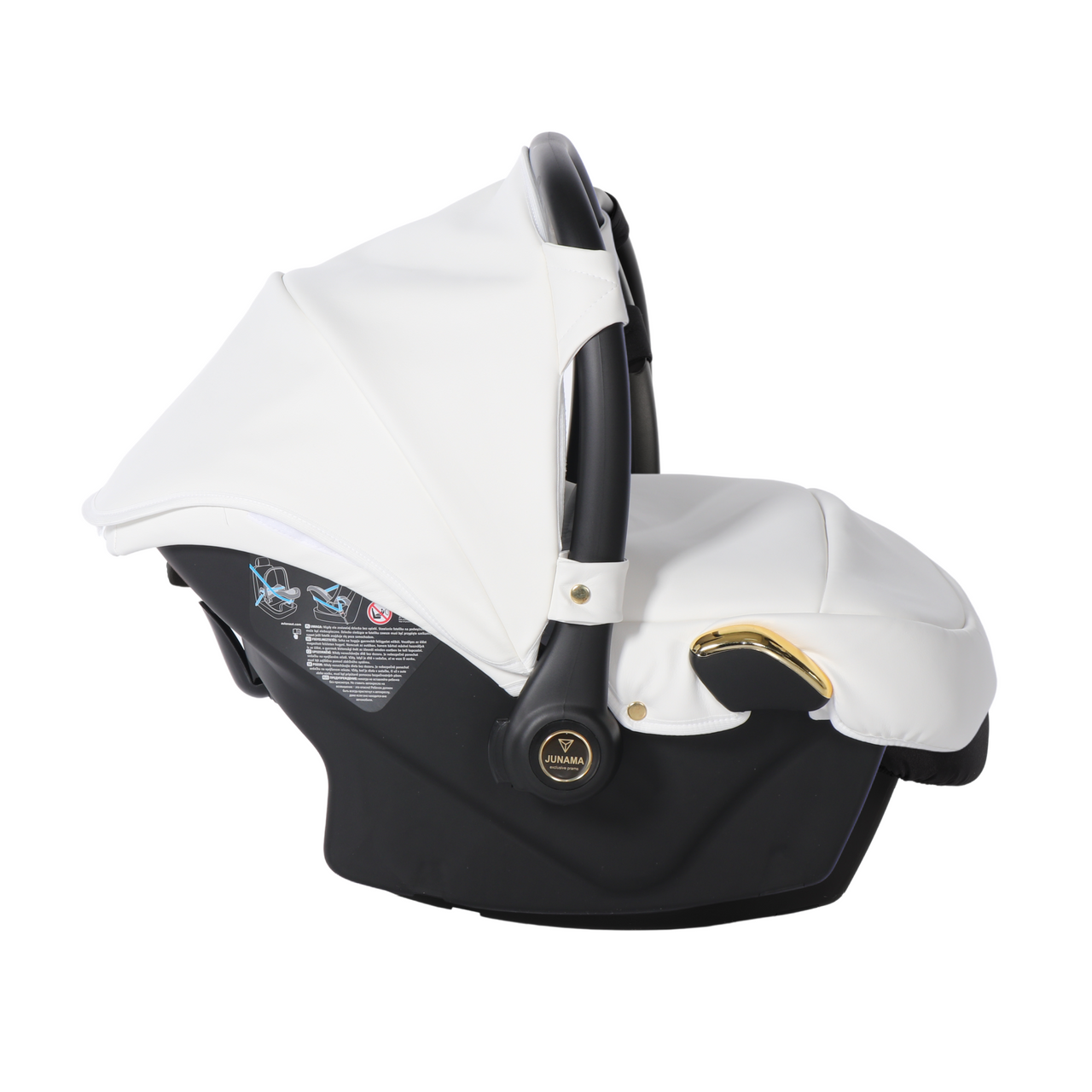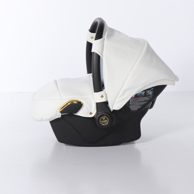 The car seat is compatible with all Junama frames using adaptors (adaptors are included). The ergonomic handle makes it easy to carry after detaching it from the chassis. The car seat has been equipped with an advanced side protection system, which reduces stress and optimizes the child's body position in the event of side impact. This has been achieved by using the innovative EPP material in the headrest. The car seat uses memory foam, covered with soft upholstery, offering the child maximum comfort, as well as ensuring safe, correct positioning in the seat. The Junama 0+ car seat colour options perfectly mix and match to complement your Junama pram.