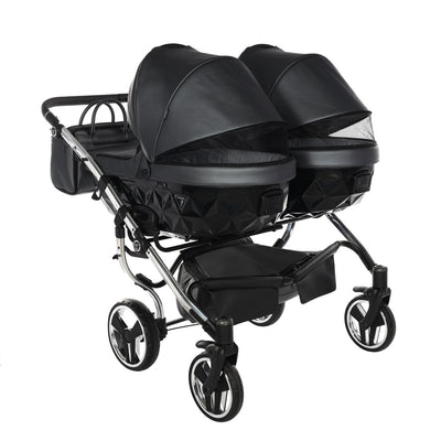 Double the happiness, double the joy and pride but also double the responsibilities and challenges. In order to meet the expectations of parents with twins, we have developed two models of twin strollers. The Duo Slim has been constructed in such a way that children can sit one behind the other, whereas the duo model allows children to sit next to each other.