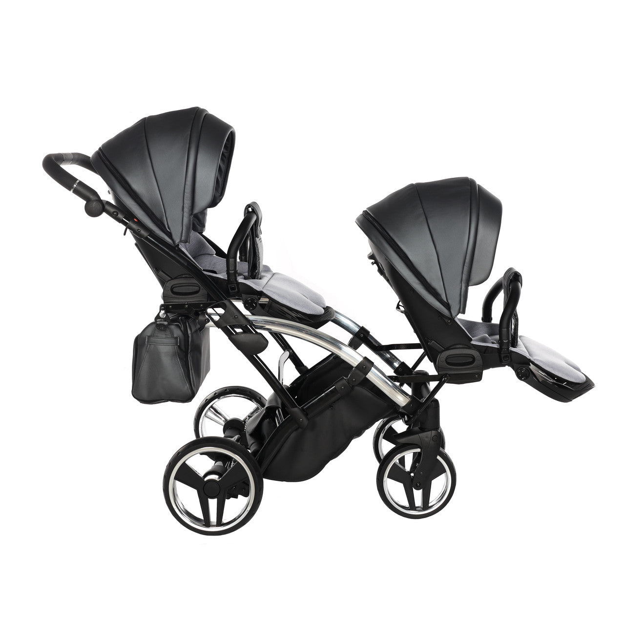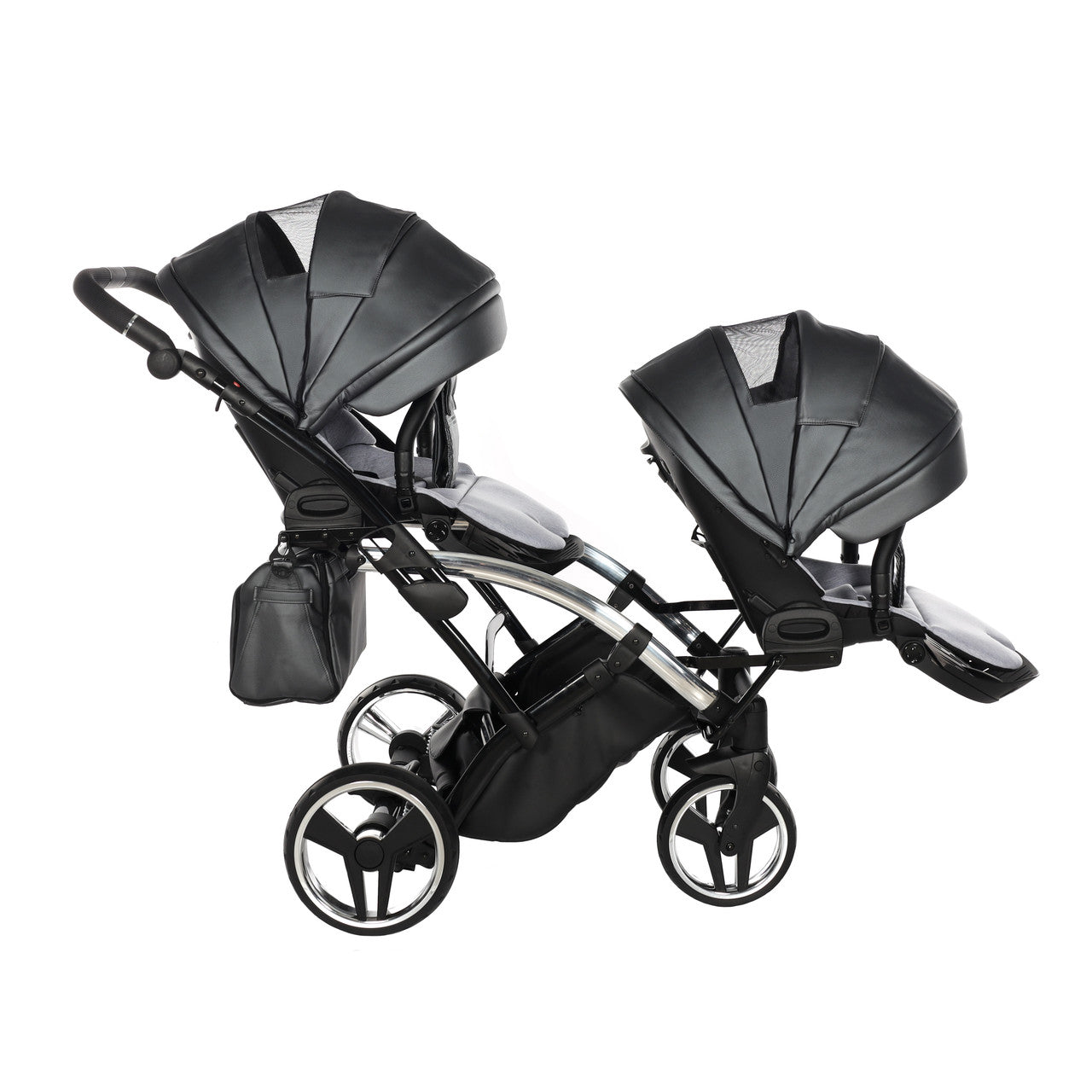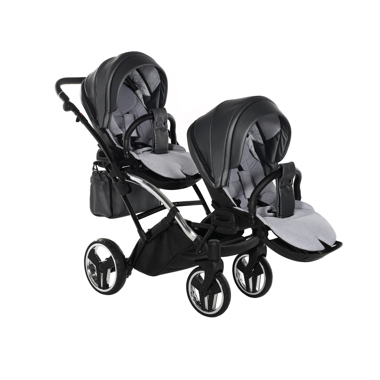 Double the happiness, double the joy and pride but also double the responsibilities and challenges. In order to meet the expectations of parents with twins, we have developed two models of twin strollers. The Duo Slim has been constructed in such a way that children can sit one behind the other, whereas the duo model allows children to sit next to each other.