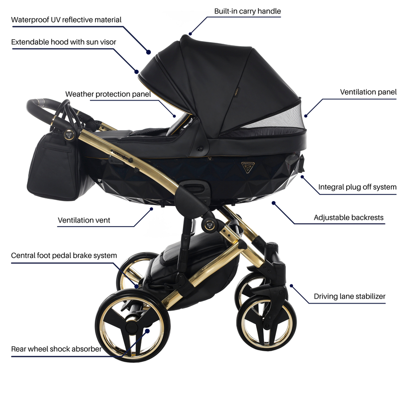 Junama has designed and manufactured exclusive prams in Europe for over 30 years. The Junama pram offers a completely new look in the world of prams. Inspired by the jewel that evokes the greatest emotion, the diamond, Junama designed the rare and beautiful diamond carrycot.