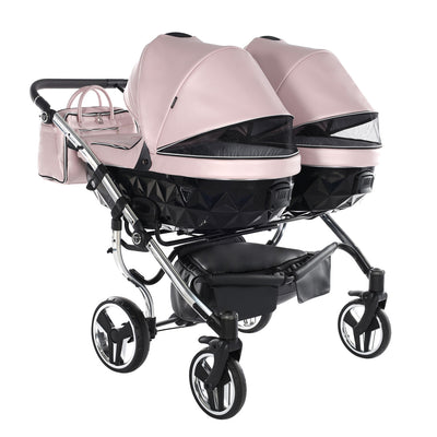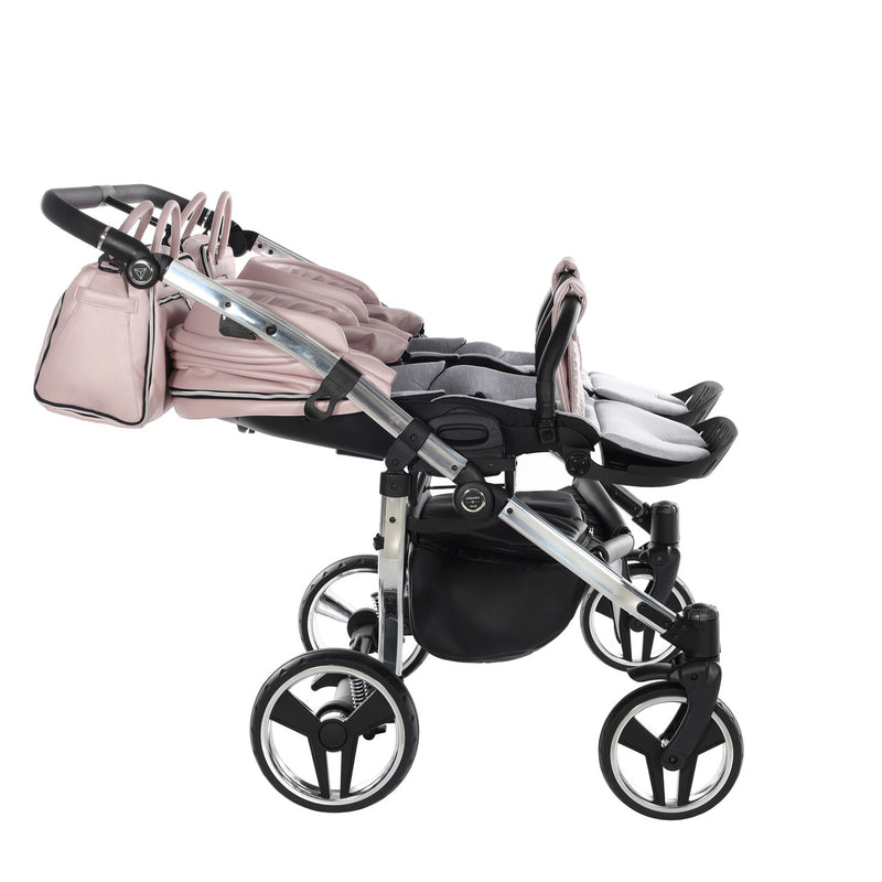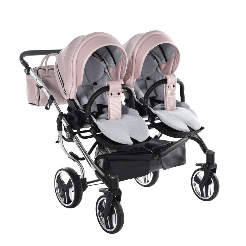 Double the happiness, double the joy and pride but also double the responsibilities and challenges. In order to meet the expectations of parents with twins, we have developed two models of twin strollers. The Duo Slim has been constructed in such a way that children can sit one behind the other, whereas the duo model allows children to sit next to each other.