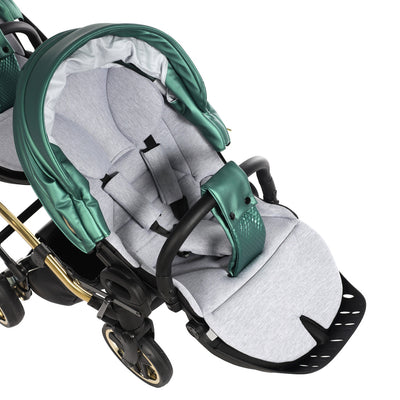 Double the happiness, double the joy and pride but also double the responsibilities and challenges. In order to meet the expectations of parents with twins, we have developed two models of twin strollers. The Duo Slim has been constructed in such a way that children can sit one behind the other, whereas the duo model allows children to sit next to each other.