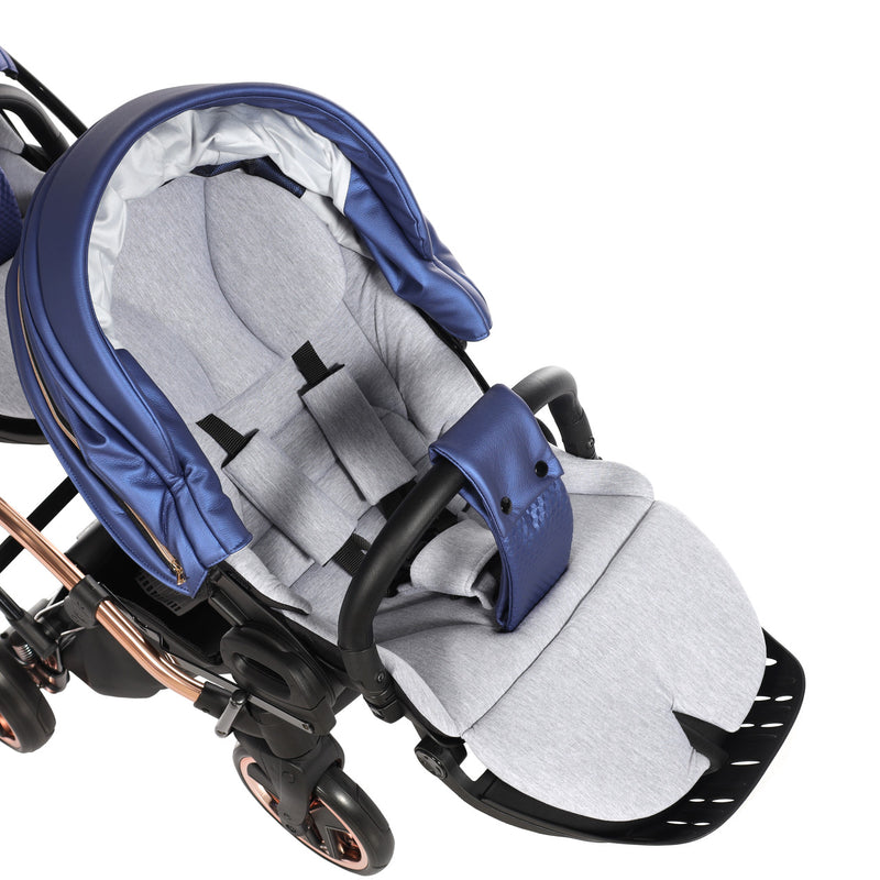 Double the happiness, double the joy and pride but also double the responsibilities and challenges. In order to meet the expectations of parents with twins, we have developed two models of twin strollers. The Duo Slim has been constructed in such a way that children can sit one behind the other, whereas the duo model allows children to sit next to each other.