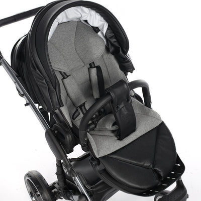 Having 4 back rest positions, adjustable footrest, comfy high quality cotton finishing and a ventilation panel in the hood gives a prefect ride performance for every little voyager. The foot rest can be adjusted in height and extended even with the apron/leg cover on.