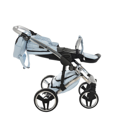 The aluminium chassis comes with superb suspension, large shopping basket and quick release wheels. Engineered with 6 shock breakers which make the pram extra comfortable and smooth. The reliable front suspension release system absorbs shocks from the ground and frontal blows, for example when hitting the curb. The chassis is engineered with a separate adjustable shock absorber ensuring agile steering on all terrains.