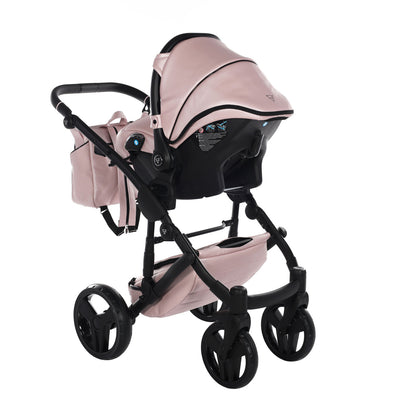 The S-class Pink is a stunning pram with the iconic diamond design carrycot in pink, pink eco-leather hood, shopping basket and matching backpack. The pram has a black frame, with black alloys and subtle pink detailing. The S-Class collection comes in 10 vibrant colours.