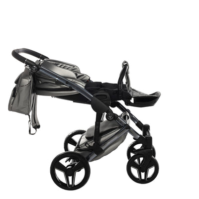The aluminium chassis comes with superb suspension, large shopping basket and quick release wheels. Engineered with 6 shock breakers which make the pram extra comfortable and smooth. The reliable front suspension release system absorbs shocks from the ground and frontal blows, for example when hitting the curb. The chassis is engineered with a separate adjustable shock absorber, ensuring agile steering on all terrains.