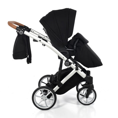 The height adjustable handle bar can be adjusted 180° to suit all members of the family and has an eco-leather finish for utmost comfort. The ingenious folding mechanism allows for a compact collapse, the chassis can fold together with the pushchair seat unit attached protecting the upholstery and ensuring hygiene.