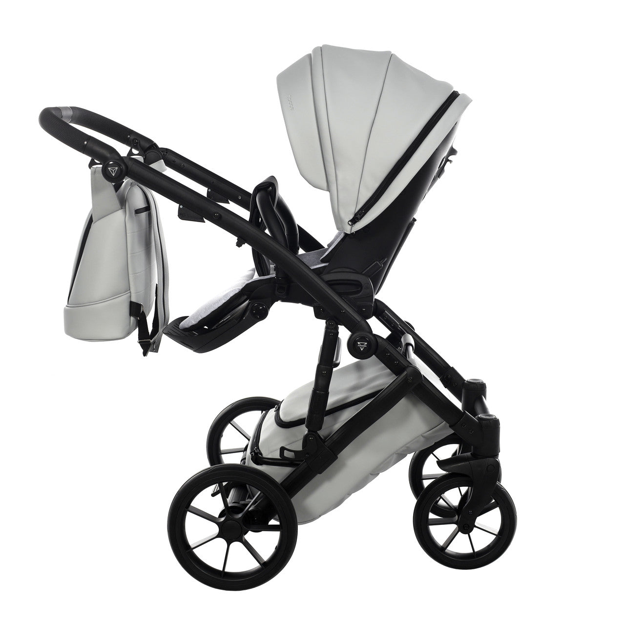 The height adjustable handle bar can be adjusted 180° to suit all members of the family and has an eco-leather finish for utmost comfort. The ingenious folding mechanism allows for a compact collapse, the chassis can fold together with the pushchair seat unit attached, protecting the upholstery and ensuring hygiene.