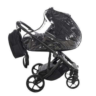 The aluminium chassis comes with superb suspension, large shopping basket and quick release wheels. Engineered with 6 shock breakers which make the pram extra comfortable and smooth. The reliable front suspension release system absorbs shocks from the ground and frontal blows, for example when hitting the curb. The chassis is engineered with a separate adjustable shock absorber, ensuring agile steering on all terrains.