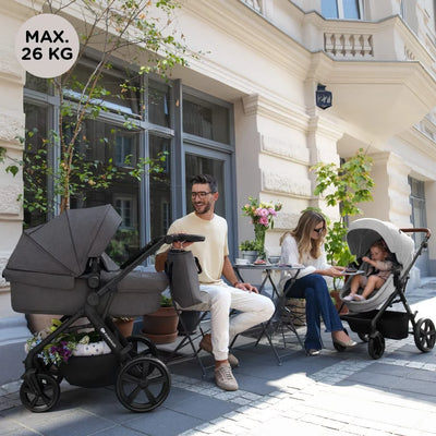 Meet the A-TOUR – a multifunctional 3in1 pushchair designed for every parent. It doesn’t matter where you live, the A-TOUR is just right for you and your baby! Large, puncture-resistant wheels, a transformable seat and a stroller load of up to 26 kg, combined with adjustment, large seat size and practical solutions, make the pushchair suitable for both urban and rural areas.