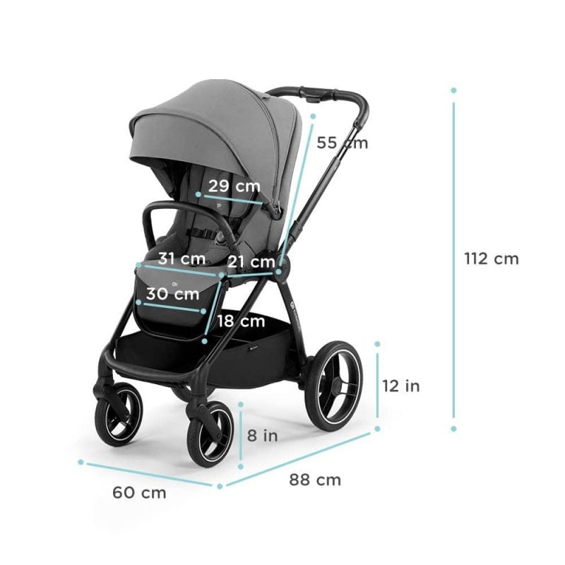 Kinderkraft NEA Pram Grey has a slim design, good manoeuvrability, and excellent shock absorption. Its large wheels (which do not need to be inflated) mean the NEA can easily negotiate high kerbs and bumpy city pavements. This pushchair has a large carrycot, a stroller with a reclining seat, and a wide range of adjustments. The NEA stroller easily folds up with the seat facing both forwards and backwards.