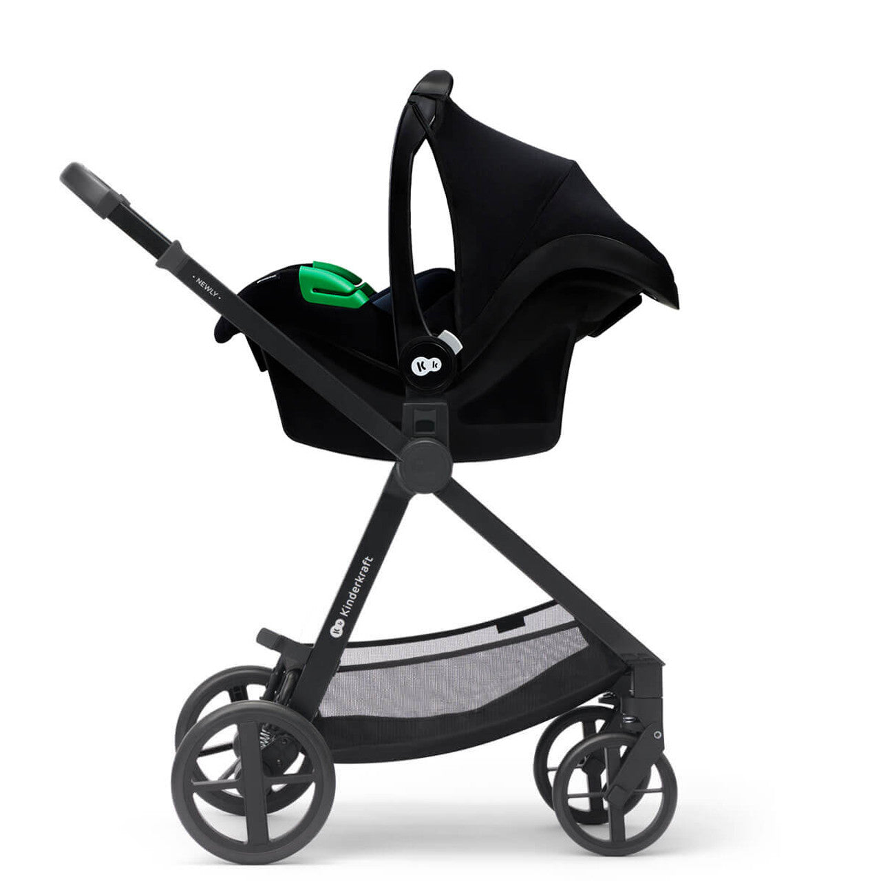 This NEWLY Travel System package comes with multifunctional Kinderkraft Mink Pro infant carrier, dedicated ISOFIX base, footmuff and rain cover. Suitable for children 40-75 cm, the Mink Pro car seat features improved design made of soft, tactile fabric, which meets the latest R129 i-Size standard. Its lightweight shell now comes with reinforced Side Protection System and height-adjustable three layer H-Guard headrest. The removable sun shield attaches to the adjustable carry handle, which can be set in 3 positions. With included car seat adaptors you can easily install the Mink Pro i-Size car seat on the NEWLY chassis.