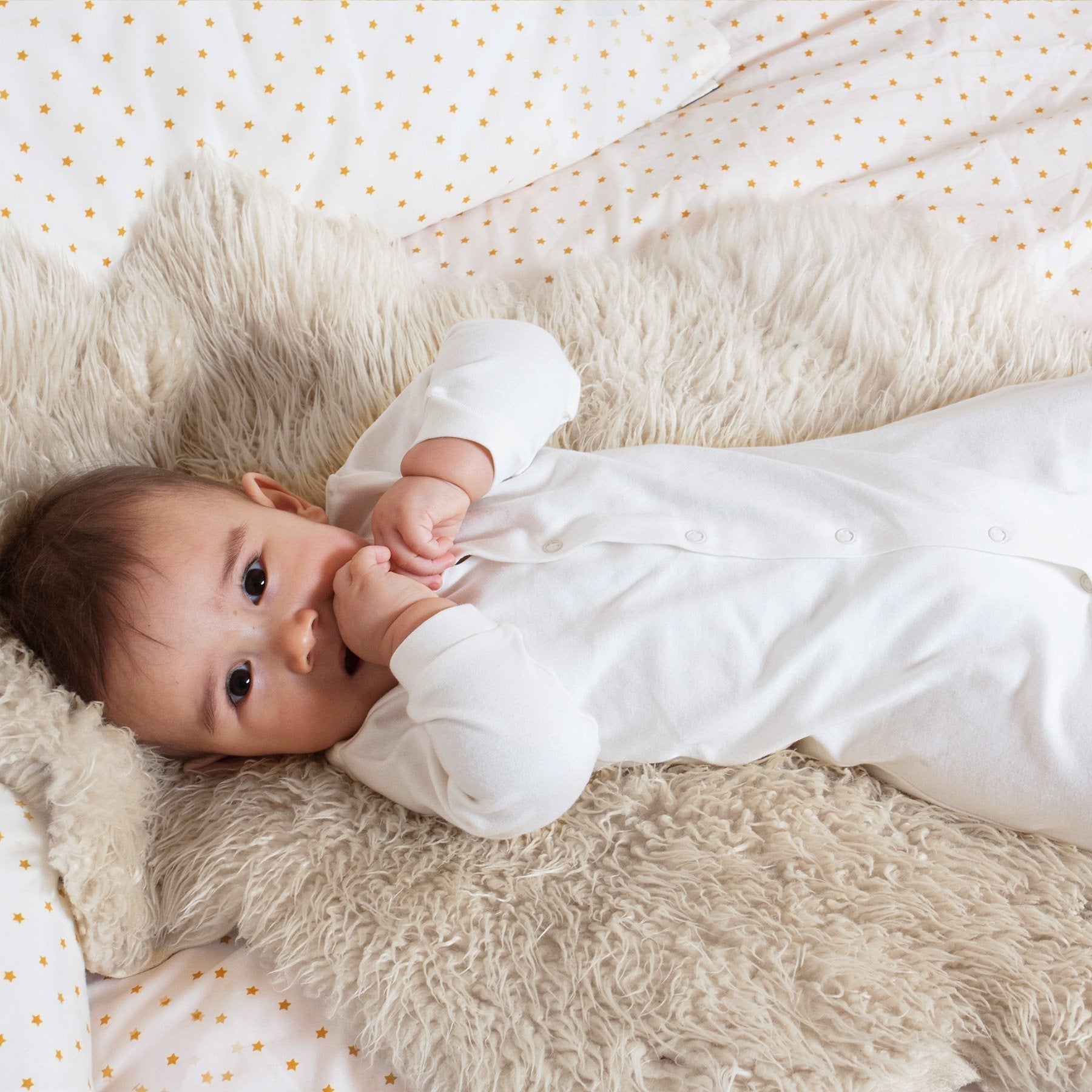 This crisp white Natural Babygrow would make a lovely gift for expecting parents. Made from 100% un-dyed organic & Fairtrade interlock cotton, it's soft and comfy enough to be worn all day and night. The premium cotton means they can be washed and worn again and again without losing quality , handy for the inevitable food spills and nappy explosions!