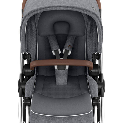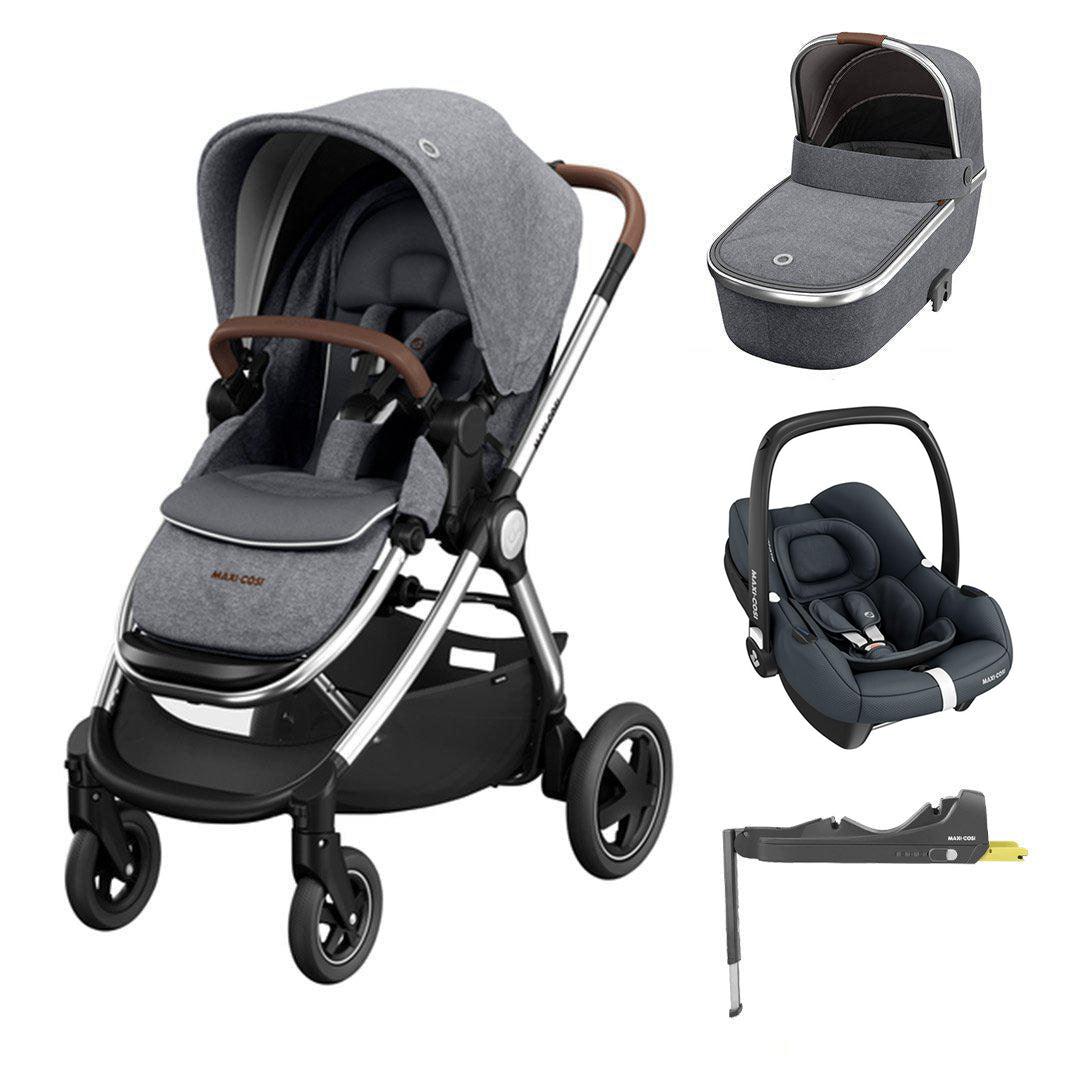 The Maxi-Cosi Adorra Luxe + Cabriofix i-Size Travel System in Twillic Grey is a special edition stroller that comes as part of a complete travel package, including a Luxe car seat, carrycot and footmuff, all in matching premium fabrics and finishes.