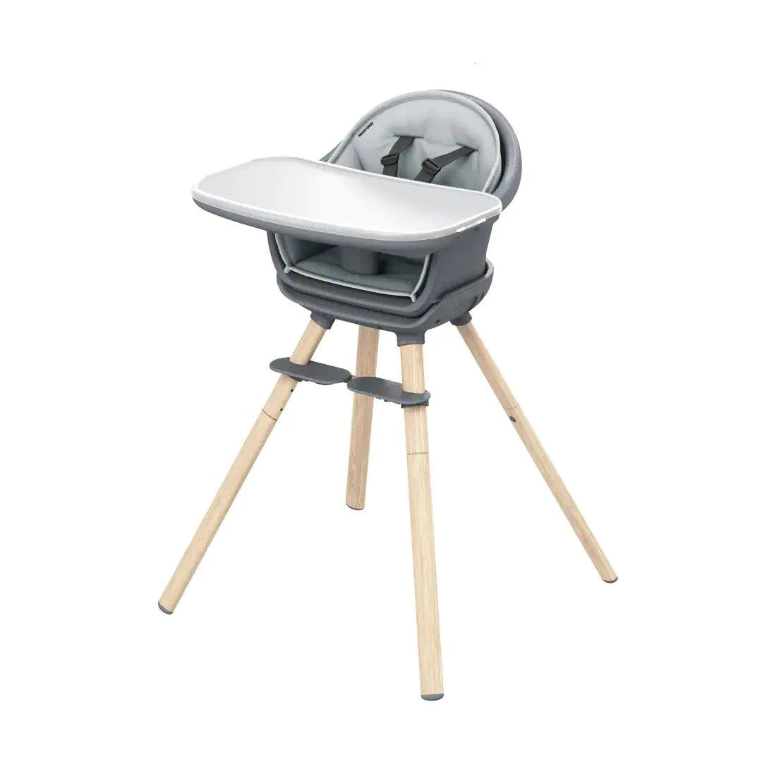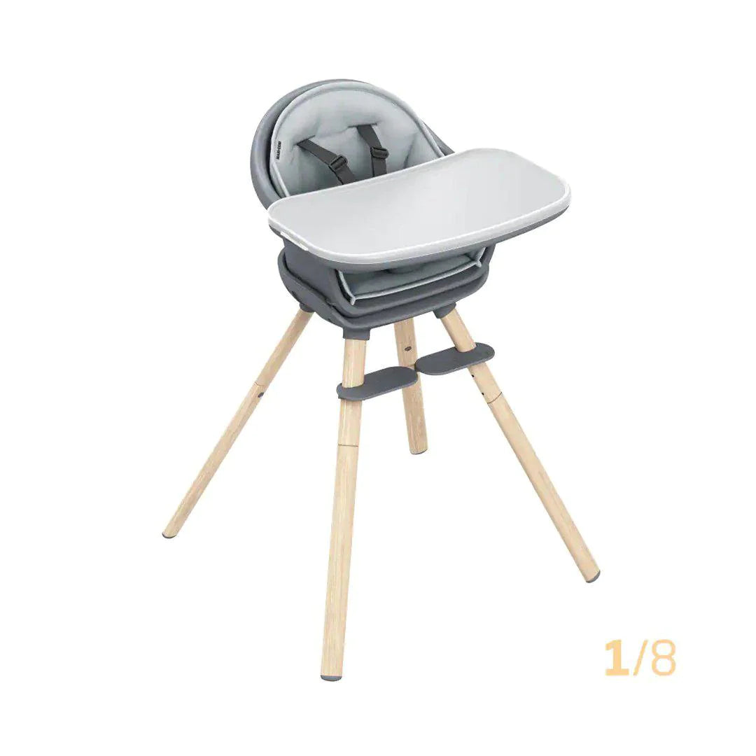 The Maxi-Cosi MOA 8-in-1 Highchair is the ideal mealtime accessory for growing babies. This super stylish, multi-use chair transforms from a highchair to a low stool, booster seat, toddler stool, and even into a handy desk with a seat - making it the perfect place for your little one to eat, discover, and grow.