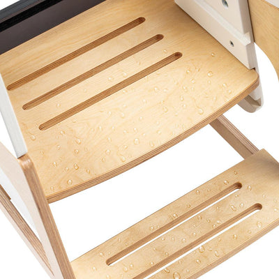 Switching between modes is simple; a quick rotation transforms Maxi-Cosi Toucan from a learning tower to a table and chair set. Children can safely use Toucan in learning tower mode from 18 months up to 6 years old. Once your toddler has outgrown the learning tower, you can detach it to transform it into a wooden stepping stool. Maxi-Cosi Toucan's versatile 3-in-1 design empowers your child to tackle a multitude of tasks, from reaching kitchen countertops to brushing their own teeth. For parents, keeping Toucan clean is easy thanks to its protective and water-resistant finish.