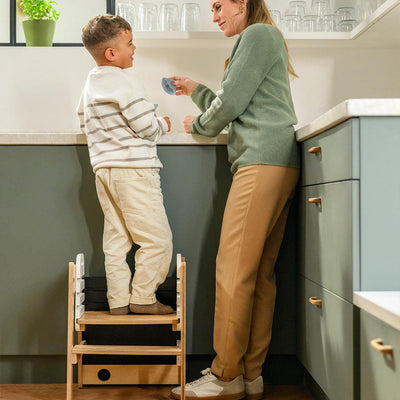 The Maxi-Cosi Toucan 3-in-1 Learning Tower in Natural empowers your little one to follow their curiosity and learn through exploration, inspired by Montessori principles. Toucan's 3-in-1 design opens a world of possibilities for your little one. Join the kitchen fun in learning tower mode (from 18 months up to 6 years), unleash their creativity on the integrated blackboard in table and chair mode (from 18 months up to 6 years) and watch them reach for new heights with the stepping stool option (from 18 months up to 99+ years).