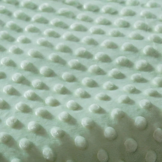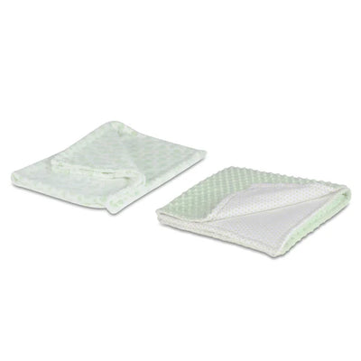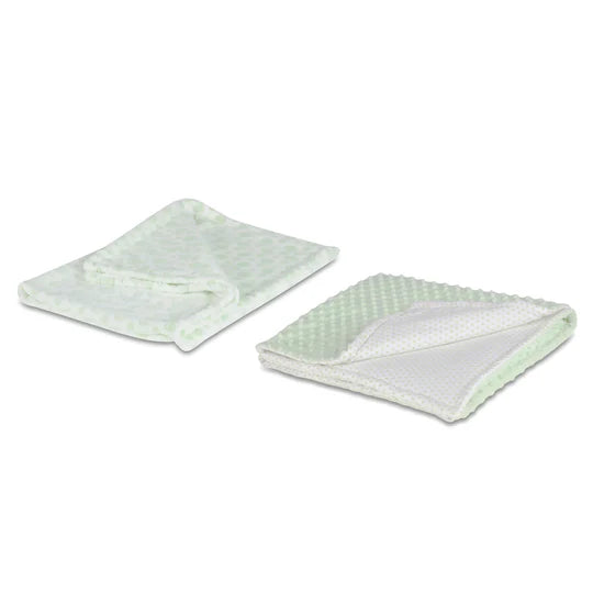 - Two-sided newborn coverlet to keep baby warm. Sage green spots on one side and a lovely soft textured sage green dimple velour to the other.