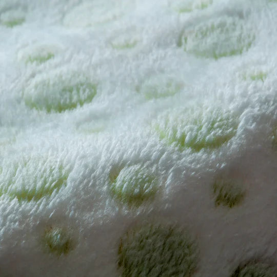 - Delightfully soft and snuggly white fleece blanket with sage green spots design.