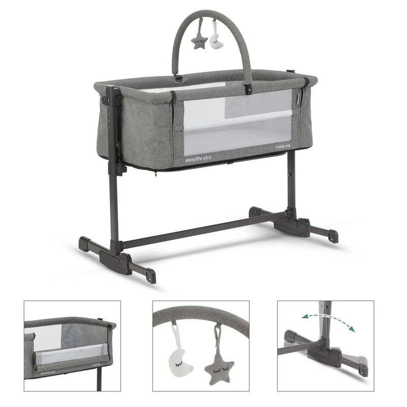 SleepTite Plus also features a delightful toy bar with 2x toys and rocking feet attachments to create a soothing rocking motion. The height adjusters on each side can be set at different angles to slightly tilt the crib which helps prevent infant reflux.