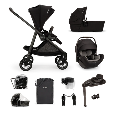 The Nuna SWIV Arra Next Bundle in Caviar has 360-degree swivel wheels.