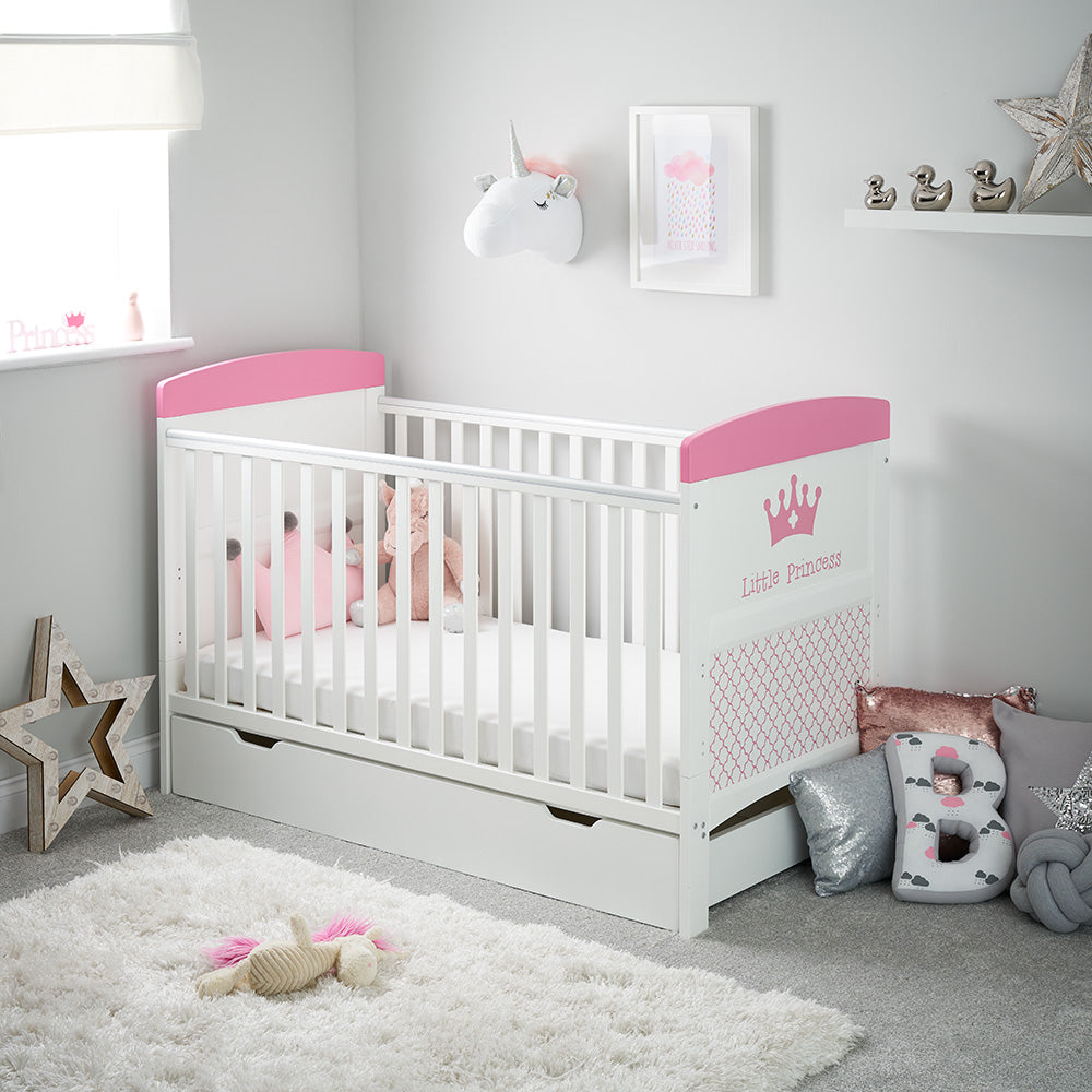 Balancing simplicity and style with a selection of valuable features, the Grace Inspire range of cot beds from Obaby are the perfect option for parents wanting to add a splash of colour and unique designs to little one’s first room. The Little Princess cot bed will make your young princess feel like real royalty featuring royal inspired designs and pink end tops.