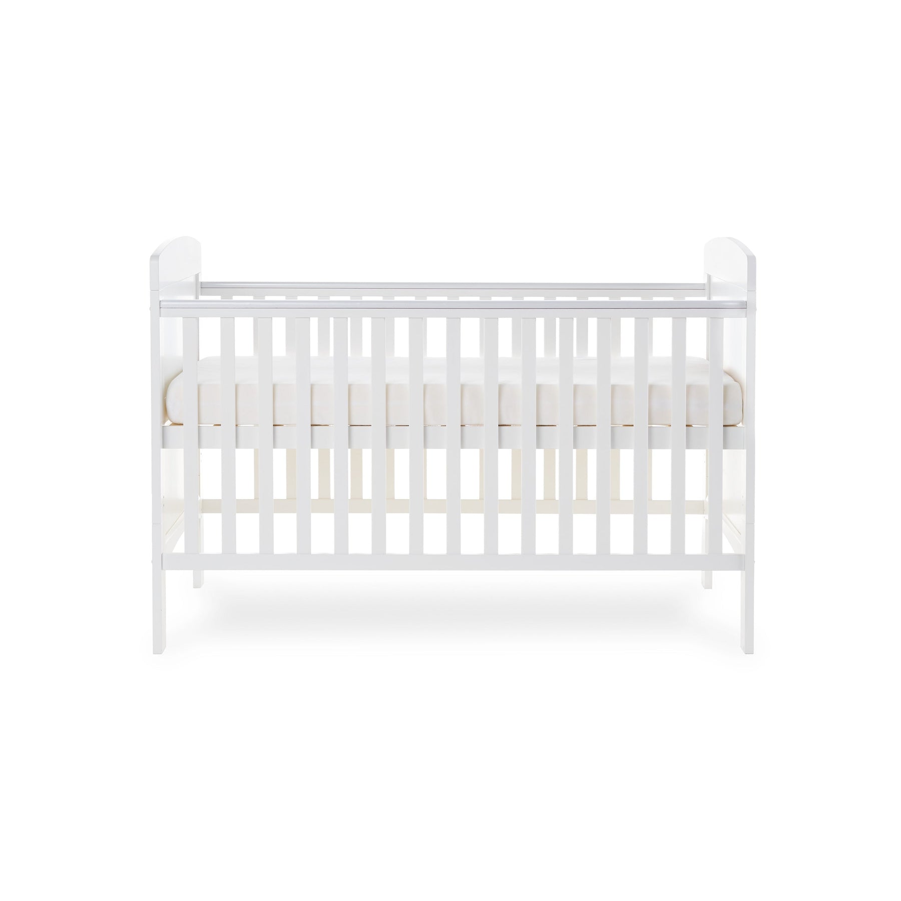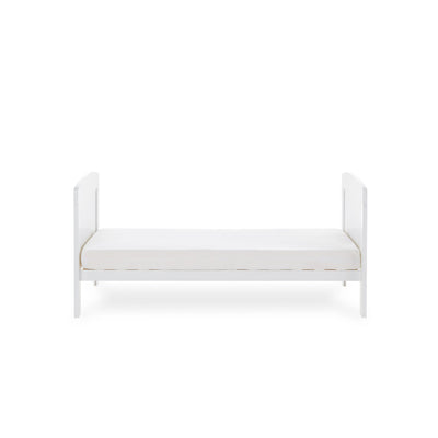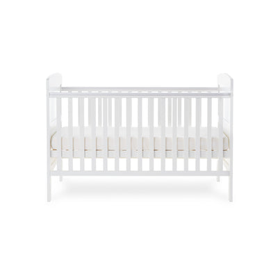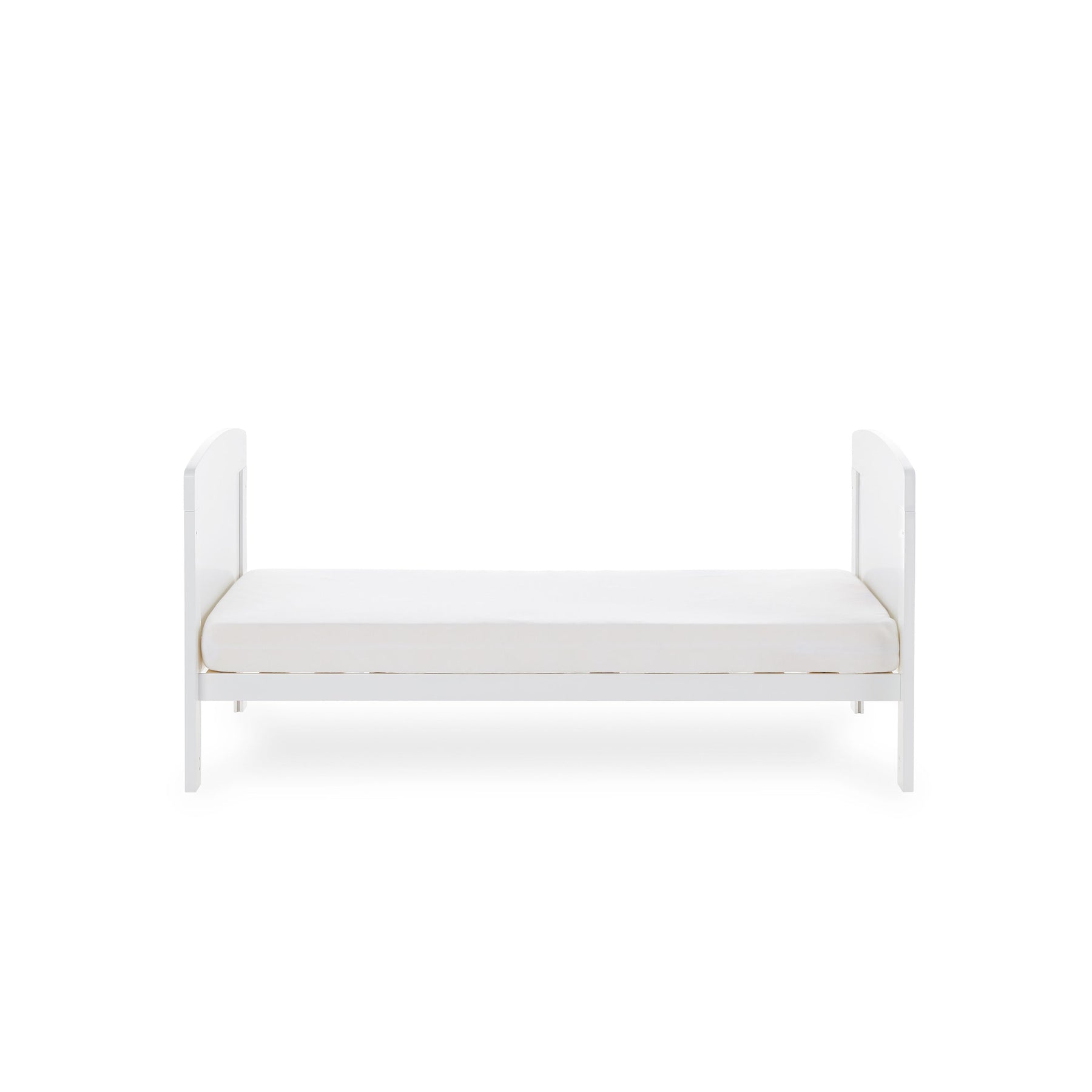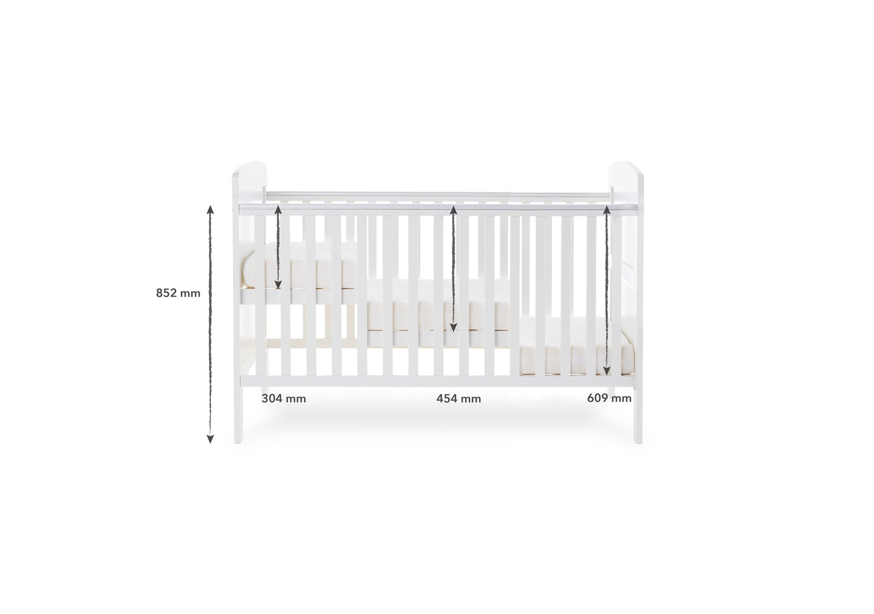 Obaby Grace Inspire Cot Bed in white with adjustable base and convertible design for toddlers
