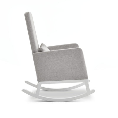 The solid wooden frame and high back provide long lasting support from head to toe, while the deep foam seat and added cushion provide superior comfort. The Obaby high back rocking chair is designed to fit into any nursery setting due to its soft and durable weaved upholstry in a neutral shade.