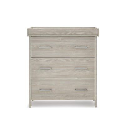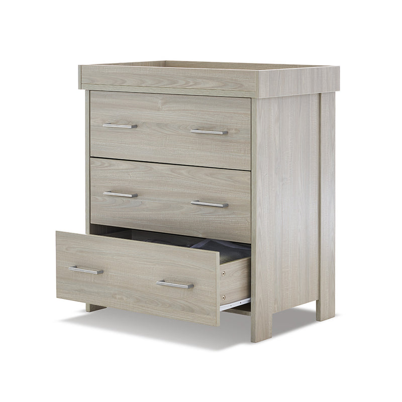 The Nika changing unit is a piece of furniture that can be used for years to come. Three large 32L capacity, full depth drawers offer plenty of space for changing essentials, toys and your little one’s precious possessions. All three drawers feature two brushed metal handles and glide on smooth runners allowing you to easily open them with either hand.