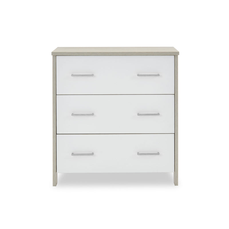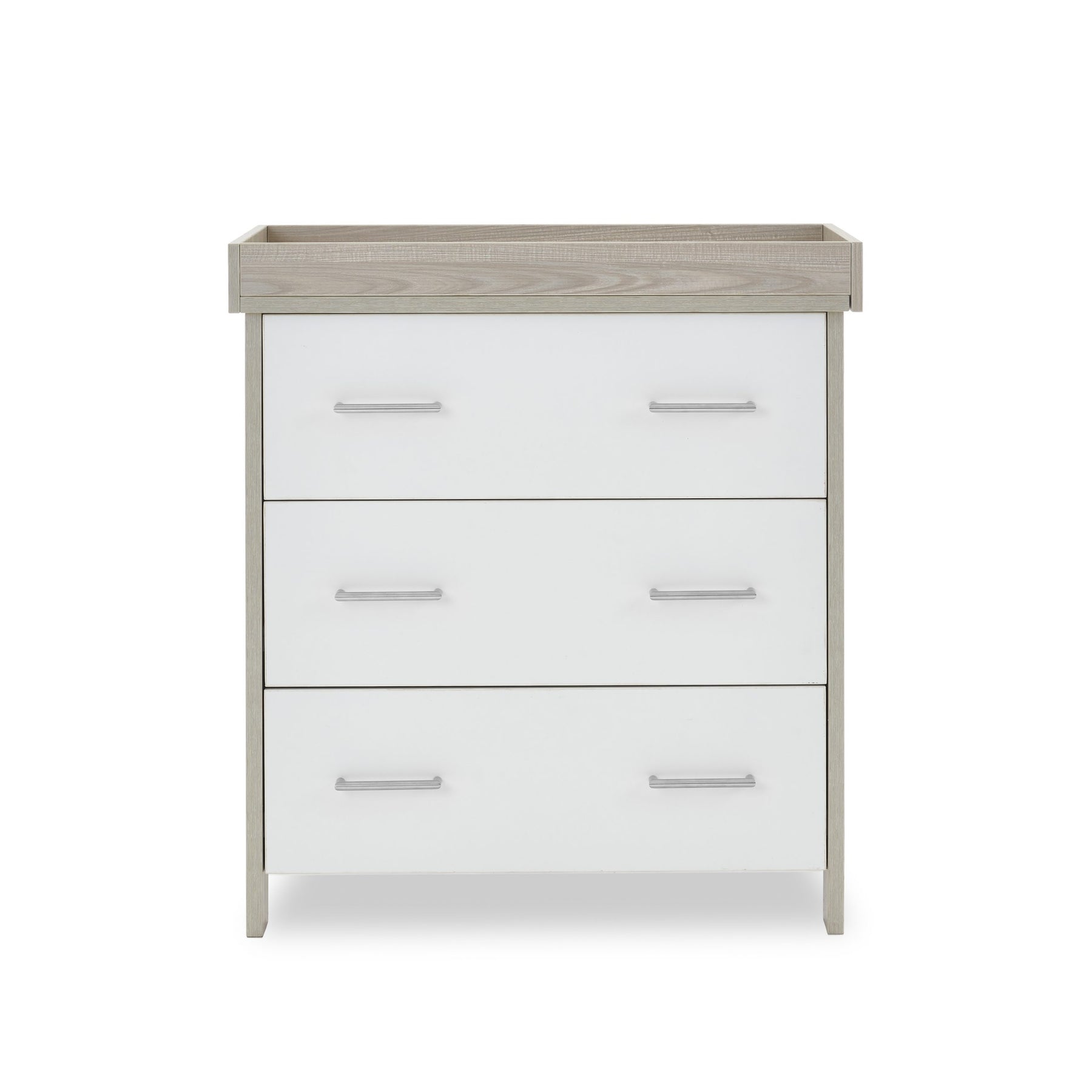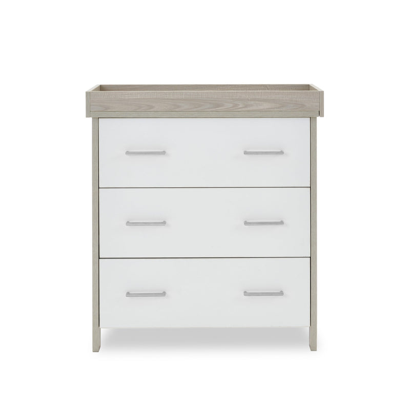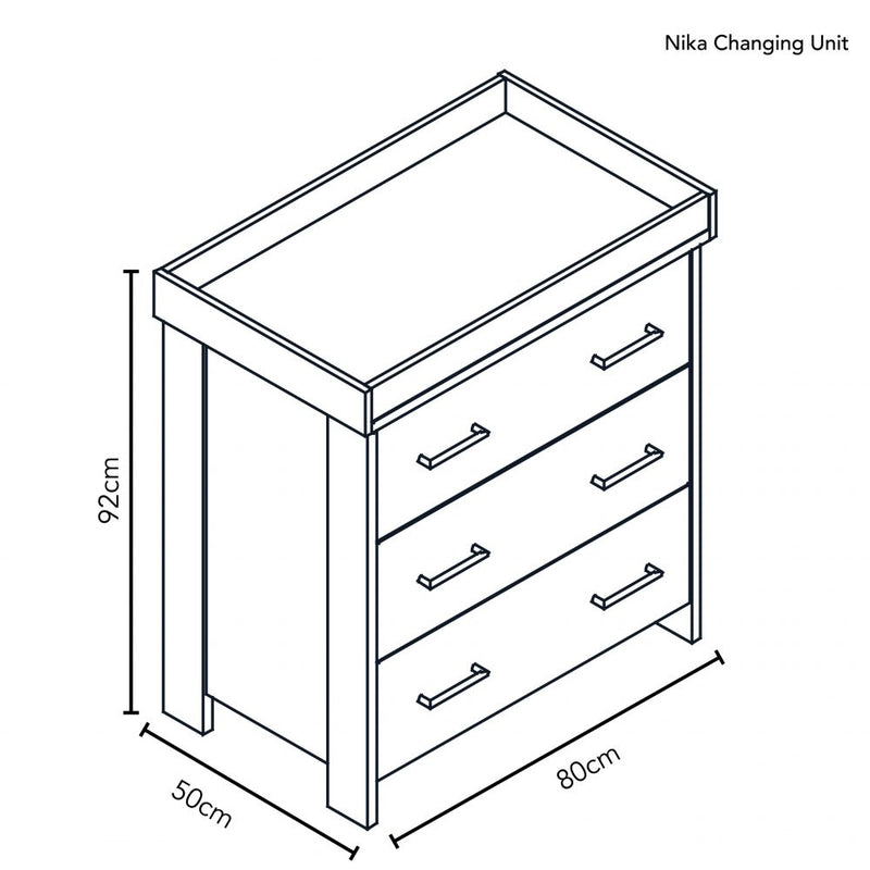 The Nika changing unit is a piece of furniture that can be used for years to come. Three large 32L capacity, full depth drawers offer plenty of space for changing essentials, toys and your little one’s precious possessions. All three drawers feature two brushed metal handles and glide on smooth runners allowing you to easily open them with either hand.