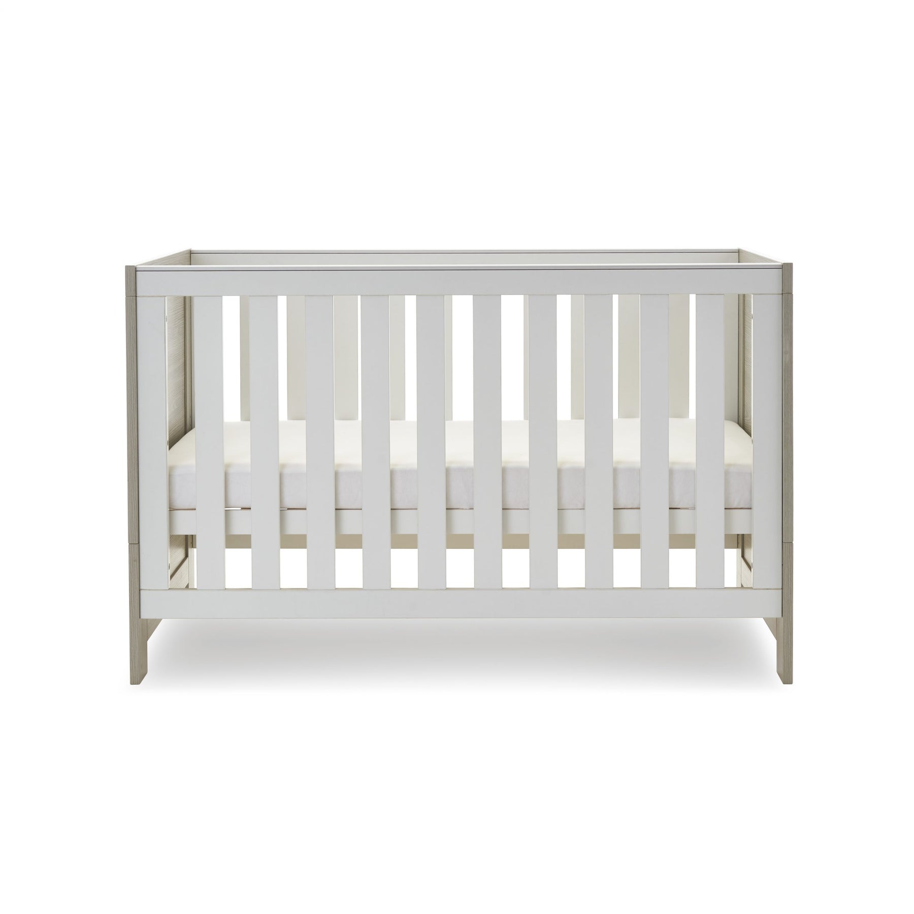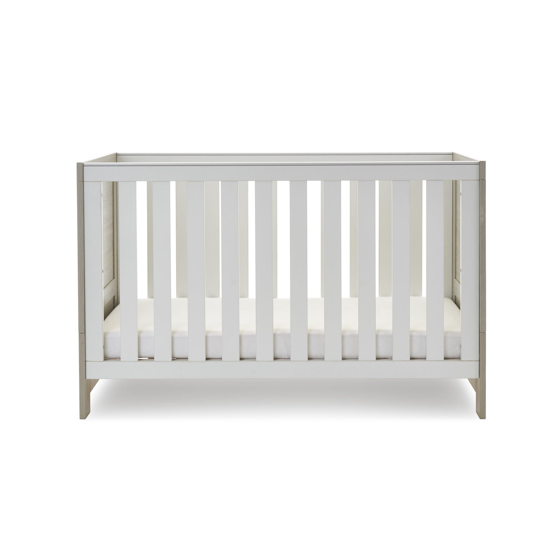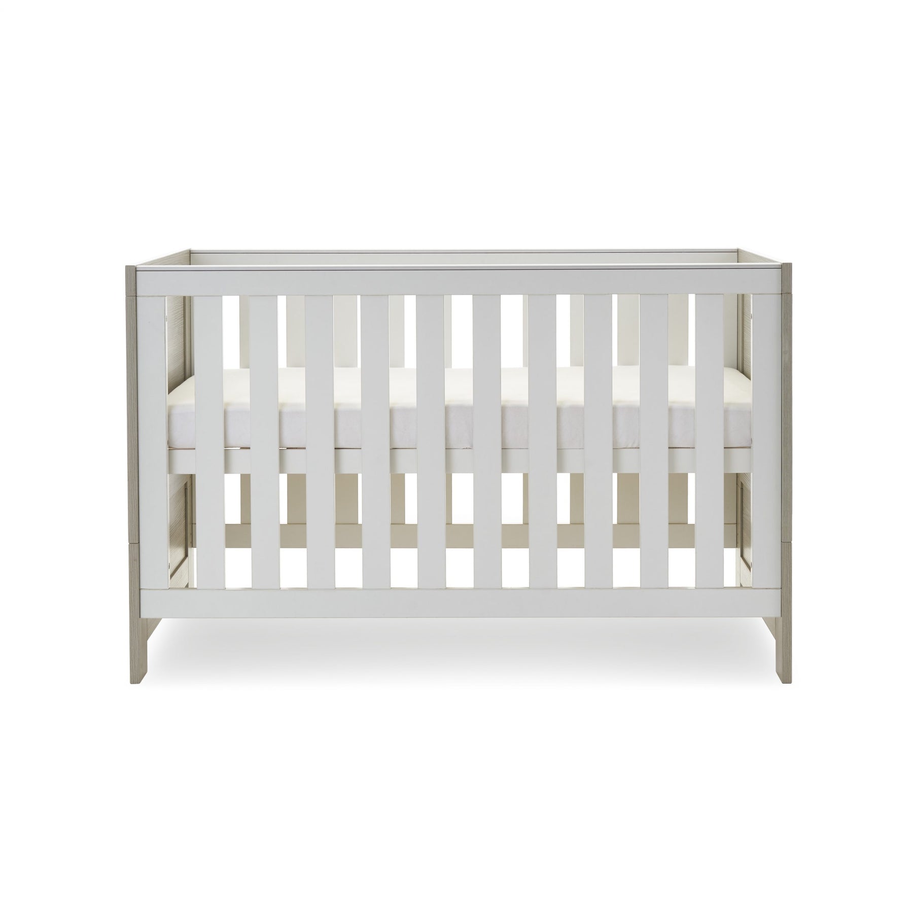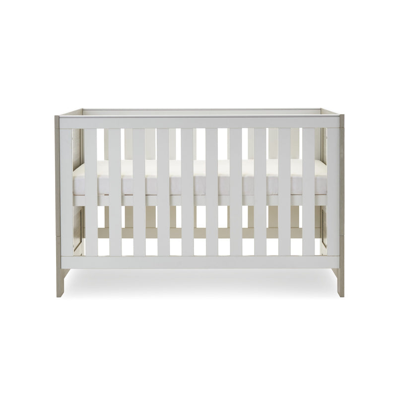 The Obaby Nika range offers a contemporary design, due to its clean lines and textured oak effect finish, that will fit perfectly in today’s modern nursery. This 2 piece room set consists of Nika cot bed and changing unit.