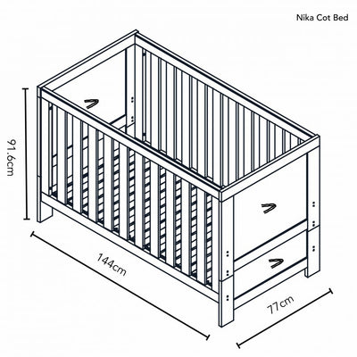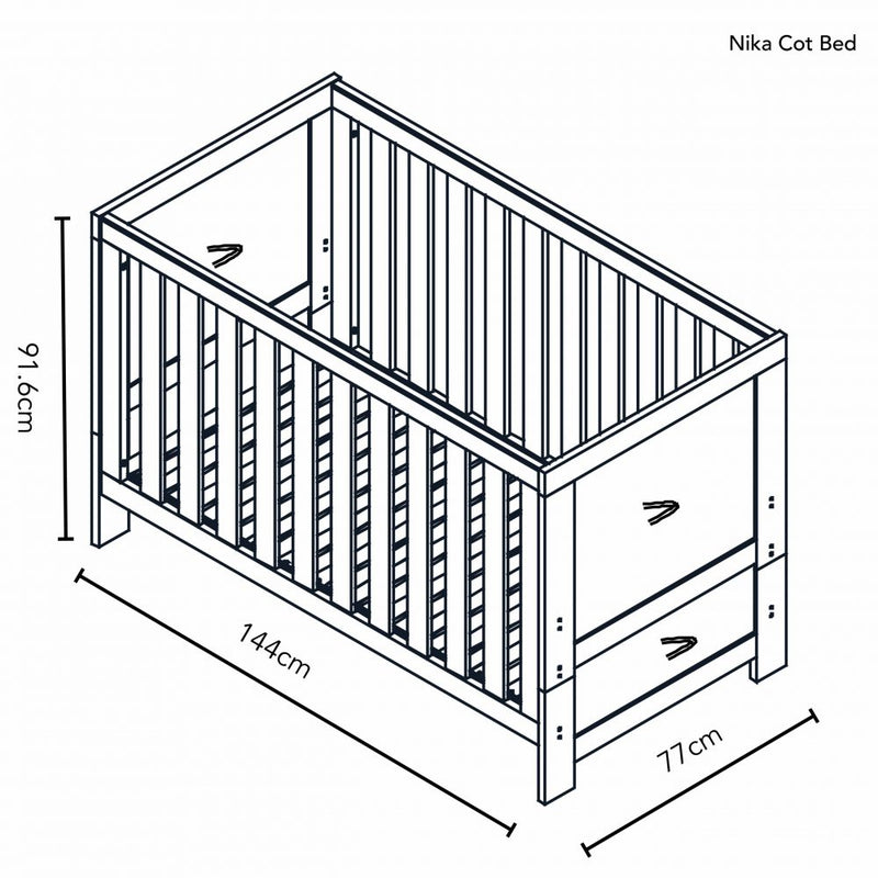 The Nika cot bed has three mattress base positions, the highest allowing you to put down and pick up your newborn without straining your back through unnecessary bending. As your little one starts to develop and become more active, the mattress base can then be lowered by a further two positions keeping them safe and secure at all times while the teething rails protect their delicate first teeth.